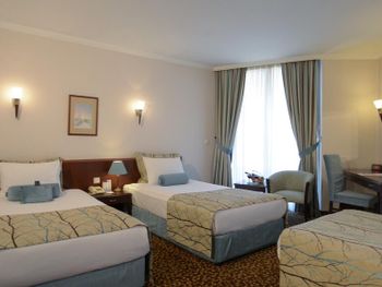 Оплата была за Полулюкс/Люкс с балконом с одной кроватью, итого дали номер 210 с тремя кроватями (который дешевле).