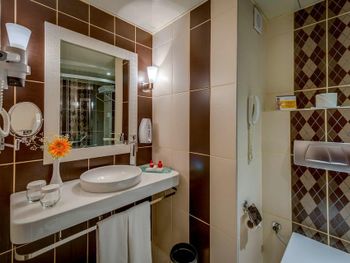 Не новая и маленькая ванна в номере . Не совсем доброжелательная девушка на ресепшн. Хотя отель норм для Турции . Хороший вид с балкона . Чистый бассейн .