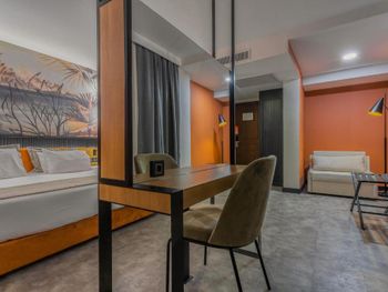 Персонал плохо понимает по-английски, мебель в номере старая, потёртая, местами сломана. Вытяжка и кондиционер работают плохо. Уборка номера не всегда качественная.