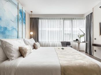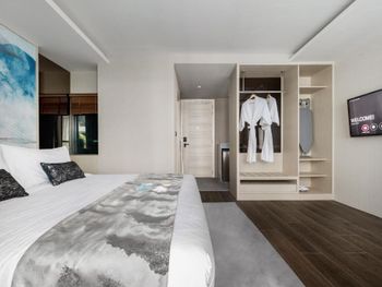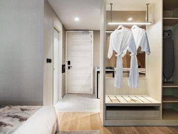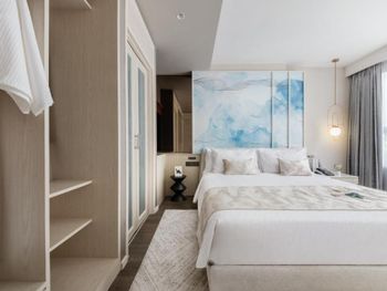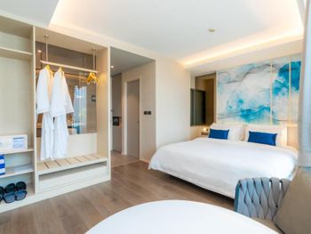Хороший интерьер номера, разнообразный завтрак. Есть бассейн на крыше и собственный выход к пляжу. Хороший интернет в номере. Бесплатный паркинг. Бесплатная питьевая вода. Выдают пляжные полотенца.