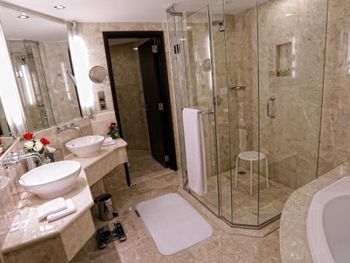 Номер был жуткий. Негативные моменты: * плохое освещение в номере * очень холодно и нет возможности нормально отрегулировать температуру в номере * номер душный и плохо вентелируется, чувствуется сырость и затхлый запах (возможно, грибок в вентиляции присутствует), нет возможности открыть окна и проветрить * номер бронировал семейный люкс повышенного комфорта, а как такого комфорта не было. В номере по факту всего одна кровать и пришлось из стулов и софы делать детям кроватку. Не понятно почему данный номер считается семейным. * полностью отсутствуют еврорезетки и поэтому нужно иметь с собой переходник (ну эта проблема для европейцев в целом эмиратов)