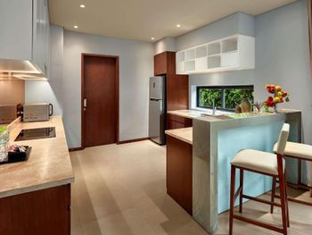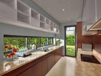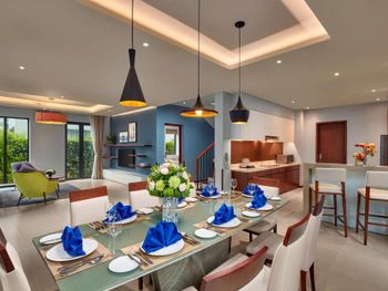 Вилла просторная, большая. Комнаты большие в каждой свой санузел. Заранее запрашивали детскую кроватку, но не предоставили при заселении, бассейн на вилле грязный, но прям перед нашей виллой был большой бассейн с теплой водой. Персонал хороший.