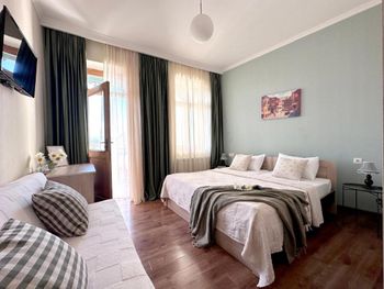 Милый уютный отель, в номере все, что нужно для проживания двух взрослых - мамы с дочерью. Отличное постельное белье, удобный матрас, подушки, одеяло. Вкуснейшие завтраки с шикарным видом на город и окрестности Тбилиси. Балкончик в номере с видом на город и цветущие деревья. Самое главное - душевная хозяйка отеля Наталья, заботливая и внимательная. Я ей очень благодарна за чудесный отдых. Если получится с новой поездкой в Грузию, буду заказывать номер только в этом отеле!