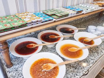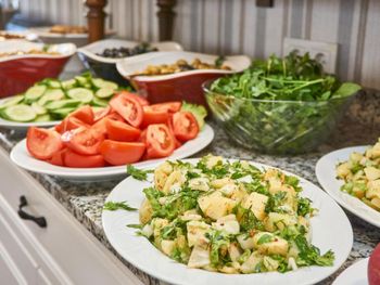 Обычный завтрак, несколько видов сыров, мясных нарезок нет, сладостей - нет. очень скромно