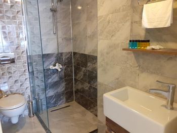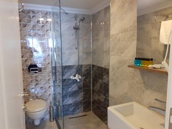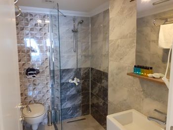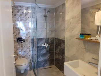 Внутреннее обустройство номеров, обветшалость обстановки, ванная комната не тянет даже на 3 звезды. Вместо забронированного номера с двумя отдельными кроватями дали номер с одной двуспальной и двумя односпальными кроватями, и это, как выяснилось позже тоже особенность турецких отелей. Вторая односпальная кровать располагалась в прихожей прямо напротив ванной. Стены замызганы ранее проживающими, в общем все требует хотя бы косметического ремонта.