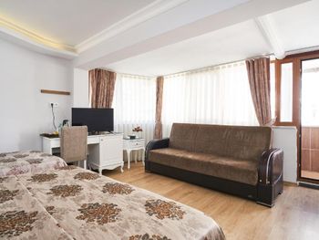 На троих дали семейный номер, хотя бронировали обычный с тремя кроватями специально, было странное расположение мебели, номер был местами грязный (потолок в жёлтых разводах, отпечатки на двери в ванную, но самым ужасным была сама ванна - очень маленького размера, было сложно развернуться, душ не закрыт,вся вода стекает на пол, запах сырости, уборку сделали только один раз, потом даже мусорные корзины не выбрасывали. Еще очень странно,что в номере нет зеркала, только маленькое в ванной, это неудобно.