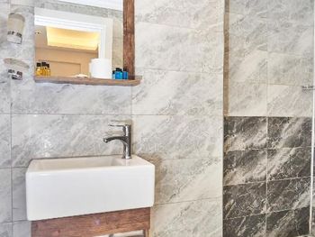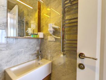Здание очень старое, ужасно скрипели половицы. Если ночью наверху кто-то ходит, то спать невозможно. Санузел очень маленький. Отель тянет максимум на 3 звезды. Этих денег не стоит.