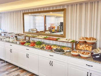 Самое ужасное, что наступает 10:00 утра и персонал начинает резко и быстро убирать еду и всем своим видом просит уйти побыстрее с зоны где кушают. Это ужасно, отсутствие полной этики.
