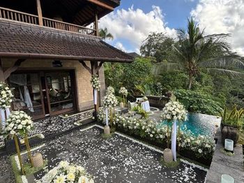 Это Фантастика! Даже 10 баллов будет мало!! Первое встреча-как вип гостей! Приветственный прохладный напиток и закусочки! Быстрое заселение, отнесли наши чемоданы! После обеда угостили капучино/чай с вкусняшками! И так-место где находится вилла- оазис спокойствия в джунглях, слышно только пение птиц и как журчит речка внизу! Каждая комната на вилле как шедевр! Так приятно было пить кофе на открытой верхней веранде с видом на джунгли, сидя в удобных креслах и слушать звуки природы! Душевые на открытом воздухе- безопасно, особенно понравились высеченные в скале скульптуры! Постельное белье чистое, подушки на любой вкус! А как все пахло приятно!! В душевой есть все, шикарные их фирменные лосьоны, гели! Ну а вишенка- это панорамный бассейн!! Завтрак как в ресторане!!!