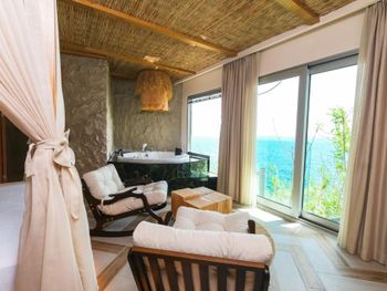 Все недостатки сгладил пляж: очень оригинальный, на скале, чистейшая вода, для постоятельцев отеля бесплатный