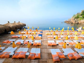 холодильник не работал два дня из трех, пока я добивался замены холодильника, затем номера убогий завтрак кондиционер едва дул и отключался при выходе из номера на пляже меня турки пытались гонять с места, которое по из мнению я занял не по праву цена за номера была в июне 50€ сейчас в конце августа при полупустом отеле 110€