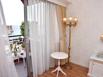 Шикарный вид на море из комнаты 403, симпатичный номер и интерьер. Хороший напор горячей воды. Пляж в минуте ходьбы оборудован лежаками, переодевалками и душем. Чистое море. Выдают свежие полотенца для пляжа. Недалеко автобусные остановки и несколько торговых центров. Есть 2 бассейна. Один на улице, рядом с дорогой, работает до 18:00 и больше подходит для детей. Другой в подвале здания, не пользовались.