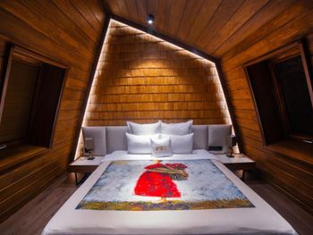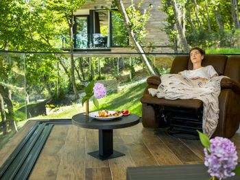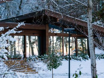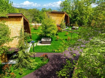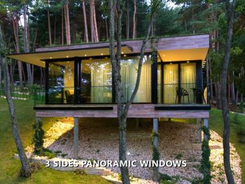 + Потрясающие домики, красиво, комфортно, чисто. Вообще никаких нареканий! Теплый пол, панорамные окна, шторы блэкаут, супер удобная огромная кровать и крутые кресла. Малышу дали детскую кроватку милую и удобную.