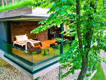 Приезжали на одни сутки на день моего рождения. У отеля Большая территория, можно классно гулять целый день. Домики прекрасно обставлены, чисто, уютно. Очень удобная кровать и кресла. Атмосфера полного расслабления, тишина спокойствие.