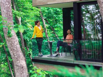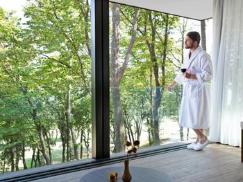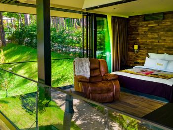 Красивое ухоженное место. Совсем немного домиков на большой территории , вокруг лес, тропинки, где можно заниматься скандинавской ходьбой, поляна с полевыми травами, из которых тут же делают лечебные сборы. Прекрасное ощущение уединенности и комфорта. Дома с панорамным остеклением. Лежишь на кровати как-будто в лесу. Резорт только что перезапустился после реставрации. Дизайн свежий. Персонал приветливый. Бомбический ресторан с деревьями внутри , в теплую погоду можно есть на открытом воздухе с видом на Тбилиси. Это были прекрасные 8 дней.