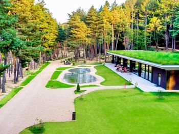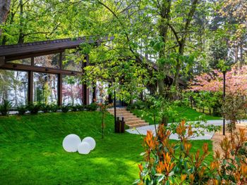 потрясающий вид, шикарный парк, очень уютная территория, дорожки, альпак, павлины. планировка коттеджей продумана до мелочей - стильно, удобно. Теплые полы, эксплуатируемая крыш - и частный "садик" на ней! Великолепные массажные столы в СПА центре, теплые полотенца
