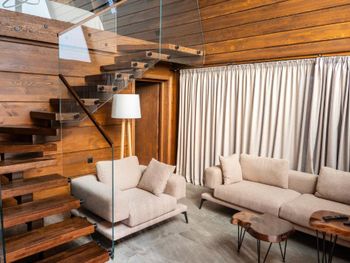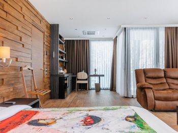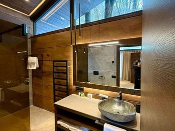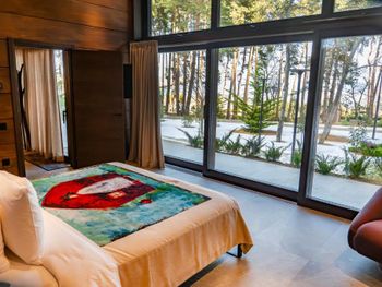 Замечательный эко-спа курорт рядом с Тбилиси. Современные домики-шале с панорамными окнами посреди леса, огромная территория, качели, детская площадка, дорожки, птицы. По территории гостей развозят на мини-автобусиках. В домиках очень просторно и комфортно, большая кровать, диван, шикарное качающееся кресло, теплые полы, телевизор, кофемашинка, умная колонка, даже увлажнитель воздуха ) и с утра просыпаешься, открываешь шторы - и ты посреди заснеженного леса! На территории есть ресторан с шикарными завтраками (все виды блюд из яиц, сырные и мясные нарезки, овощи, каша, даже красная рыба, оливки, свежая выпечка) и очень вкусными ужинами. Отмечали день рождения мужа, нам очень понравилось все, что заказали, и от ресторана в виде сюрприза принесли тортик со свечкой, было очень мило. Посетили спа-центр, взяли 2 массажа, и в подарок нам дали посещение соляной комнаты. Обслуживание и все оборудование отеля на высоком уровне. Обязательно вернемся сюда еще!