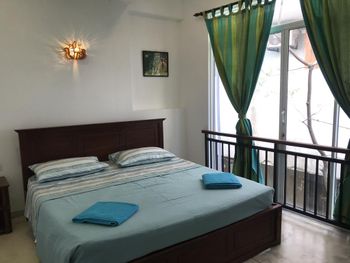 Хорошее месторасположение, оживленная улица. Номер на крыше - один раз к нам прилетел павлин, постоянно бегали бурундуки, а через дорогу на соседних гестхаусах тусовались обезьянки. Очень гостеприимные хозяева дома.