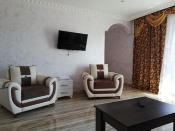Очень доброжелательные хозяева. Вкусно и много комили. На территории отеля зелёный дворик с беседками. Море не далеко, можно пешком прогуляться или подъехать на маршрутке. Наша компания осталась довольна.