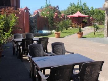 Симпатичный, уютный садик-дворик с беседками, в которых приятно позавтракать или поужинать. Неплохо готовят, цены на питание адекватные. Отзывчивый, приветливый персонал.