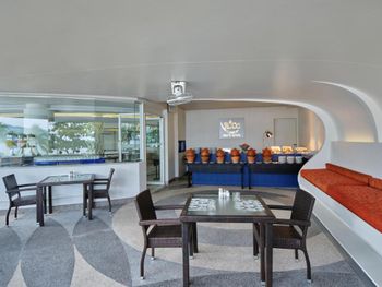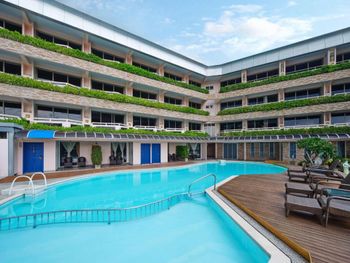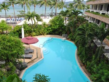 Имеется в отели два бассейна , один прям для релакса и тишины , второй во дворе с видом на улицу и море ) и всегда чисто и всегда чистят бассейн : не раз сами видели )
