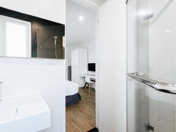 Хорошее расположение, тихо, дружелюбный персонал. Внизу можно покушать, сделать чай/кофе.