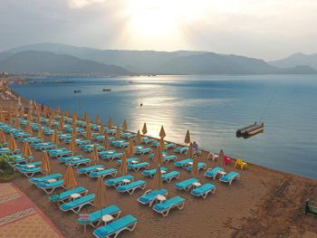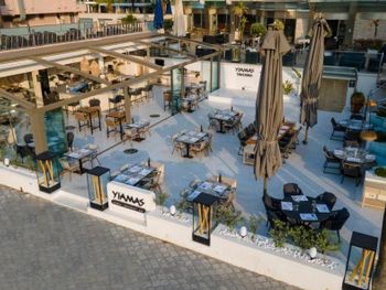 Пляж просто ужасен. Лежаки занимали в 6 утра. К морю не протолкнуться. Итог: мы отдыхали на другом платном пляже. В ресторане очереди даже за чаем, еда совершенно не вкусная. Итог: мы обедали в других платных ресторанах. Персонал не справлялся с потоком гостей. Из забронированного нами номера с видом на море, вид закрыли два отеля, которые действительно были на первой линии.