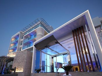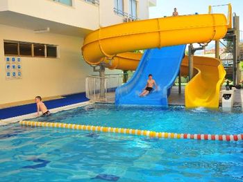 Прекрасный отель, несколько бассейнов. Все современное и приятное. Вкусные коктейли, водные горки для детей подойдут и взрослым) Много напитков, вкусная еда. У нас был номер с видом на море.