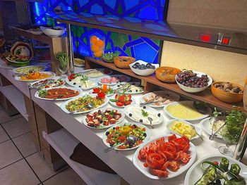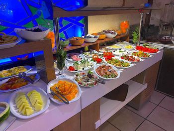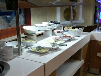 Завтрак великолепный, разнообразный: фрукты, овощи, яйца, сосиски, колбаски, хлопья - всё в разных видах.