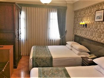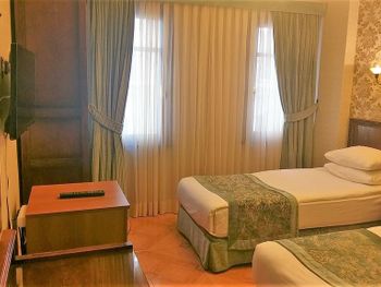 Понравилось качество работы персонала, работают в основном родственники, дружные ребята от службы размещения до повара, есть русскоговорящие, отдельное спасибо Управляющему и его Сыновьям! Номер обычный, у нас был эконом вариант, в номере все есть, чисто, каждый день уборка. Не работал пульт от тв приставки на телевизоре, так по моей просьбе поменяли тв, на новый с РФ каналами! Еще плюс что стоит новая система климата ( york сша) работает и на тепло, мы не мерзли в холодные Стамбульские дни.