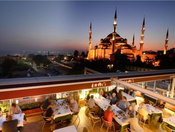 Изюминкой отеля является терраса на крыше с потрясающим видом на Босфор, Голубую мечеть и панораму Стамбула.