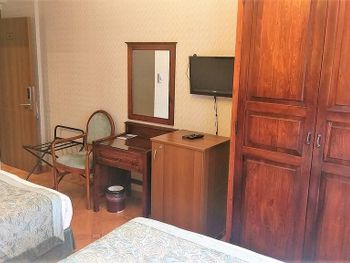 Номер очень маленький, но уютный. Плохая шумоизоляция, в номере в шкафу в дальнем углу нашли чьё то грязное белье. Завтрак скромный. Мало освещения в номере.