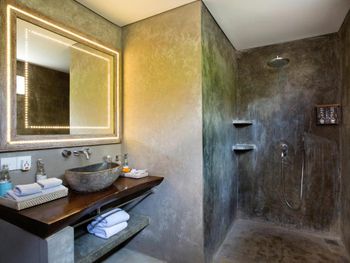 Мы взяли виллу и наверно это была наша ошибка, нам она не понравилась, в первую очередь из-за темноты, она темная и нет веранды на которой можно расположиться, в ноябре-декабре переодически идет дождь и из-за этого в помещении очень пасмурно, а мы прилетели из серой погоды, хотели посветлее. В бассейне отдельном небыло необходимости, тк он не прогревался, почти всегда в тени, возможно это только на нашей вилле, нам досталась «Лаванда» Еще был нюансик, зайдя в номер пахло сильно концентрированным средством с отдушкой цветов, очень на любителя, во второй день запахло сыростью, нам позвонили и сказали, что обнаружили неприятный запах и постараются его устранить, маскировали они его какими-то отдушками, короче, нам всегда чем то пахло. Если в следующий раз приедем сюда, то поселимся просто в номере.