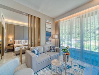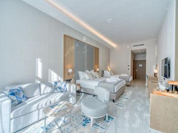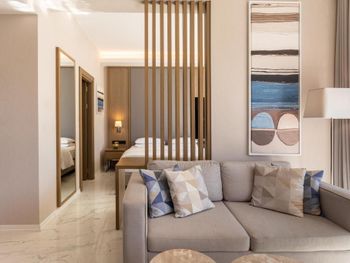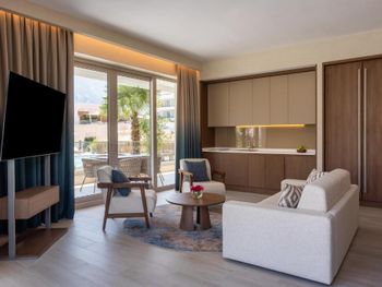 В номере была совершенно лишняя кухня . Ее невозможно было использовать в отсутствии посуды. Не было даже достаточного количества чашек и стаканов. Уборка была всегда во второй половине дня. Один день не убрались совсем. Обслуживание на пляже очень вялое, с лежаками и зонтиками проблема. И совершенно не допустимая ситуация, когда гости отеля не могут попасть на ужин в основной ресторан. Буфет на ужин нужно бронировать с утра, а лучше накануне.