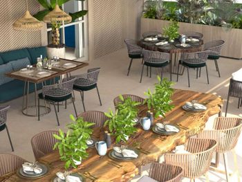 В распоряжении гостей ресторан Blue, пляжный ресторан Lighthouse и фортепианный лаундж и кафе-бар. В отеле имеется собственная пристань с 3 отдельными доками.