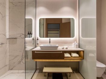 1. Слишком заметно и часто попадался на глаза персонал и откровенно убирался в коридорах. Громко шумели и чем-то гремели в коридоре горничные. Уборщица в соседнем номере, когда я вышла на балкон отдыхала на гостевом диване в соседнем номере. 2. Не понравилось, что плохо было натёрто зеркало в туалете от капель и часть на стене раковины была заляпана. 3. Не понравилось, что были в разводах стёкла на балконе и это в какой-то степени искажало картинку созерцания красивого пейзажа за окном. 4. Не понравилось общение с местной девушкой (не из Азии) администратором в спа - когда я ей задавала вопросы, она отвечала неохотно и с пренебрежением словно делает одолжение. 5. Не понравилось, что в номере не оказалось dental kit. Пришлось звонить и мне принесли.