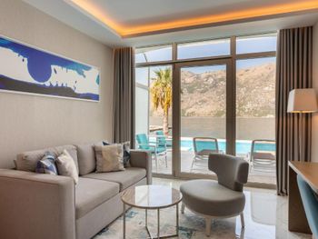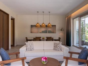 Не понравились: 1. Сервис; 2. Уборка в номерах никакая; 3. Номера, как для однолетнего отеля 5 *****, запущены и недоделаны; 4. Персонал на замечания как-бы отвечает, но не реагирует; 5. Цветы на террасе высохшие, состояние абсолютно не отвечает рекламной картинке; 6. Перегородки, даже символической, между номерами "Sea View" нет никакой, приватности тоже; 7. Плесень в душевой на потолке; 8. Джакузи не имеет connection for draining and refilling of water, seems for me that water same for all guests, хлорин добавляется "на глаз"; 9. Ручку на входных дверях починили после недели нашего пребывания; 10. Холодильник мыли сами из-за отвратительного запаха;
