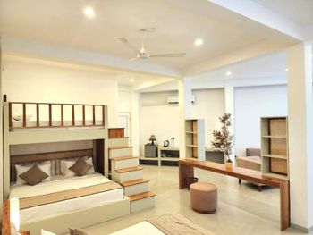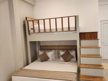 По приезду заселили в номер с неработающим кондиционером. Ремонтировать пытались на протяжении нескольких часов, потом переселили в другой номер. На следующий день в отеле выключился свет целиком. в отеле недострой, хорошие условия для проживания в 4х номерах на 1 этаже, на 2м очень душно и вид на соседей.