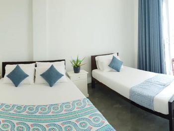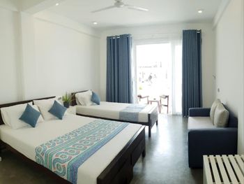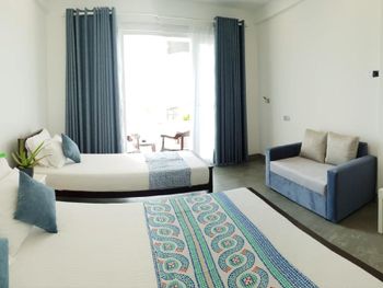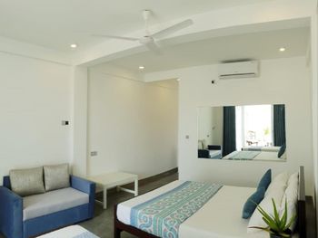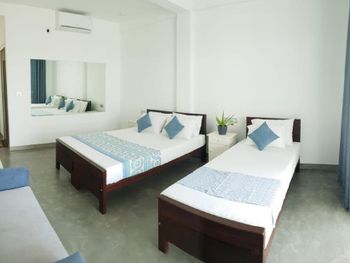 Сразу оговорюсь, что не понравилась встреча гостей! Заявлено время заезда с 13-00, мы приехали в 14-00, заселили в 15-30, то есть пришлось в духоте полтора часа ждать, что не добавляет рейтинга отелю.... В номере есть чайник, но нет чашек, стаканов ????‍♀️, нерабочий пульт от телевизора. Кондиционер, вентилятор-к вашим услугам: всё рабочее, в туалете нет косметических принадлежностей (правда их и не обещали). Заявлена парковка, не требующая предварительной брони, по факту: место на обочине дороги, где находится остановка бешеных шри-ланкийский автобусов! Порадовали очень удобные новые лежаки. Если вы-постоялец отеля, они бесплатны, для остальных-2000 рупий, персонал за этим следит, «гоняет» чужаков))) Океан очень бурный, купаться невозможно. Однако, плюс всё-таки есть: огромные черепахи приплывают к берегу, до этой локации идти 650 м. Завтраки вкусные, но скромные((( Обещанная ежедневная уборка в период нашего проживания так и не случилась ...