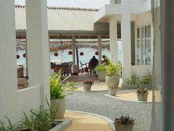 Маленький пляж, отделенный от полноценного камнями и затвердевшим песком. Как бы пройти можно, но страшновато. Придется переходить по улице. Вид на океан супер, но выйти с номера и с разбегу прыгнуть в воду не совсем получится, ведь дно каменистое. Муравьи по всему номеру - это жуть. Сначала было более менее, но после эти насекомые были и в вещах, и в чемоданах. Открытую еду мы при этом не оставляли. Периодами пахнет канализацией из туалета. Утром вайфай работает приемлемо, а часов с 5 вечера до часу ночи он не работает в принципе, хоть что делай. Видимо много людей дают большую нагрузку на сеть. В ресторан приходят шумные гости - это клево, музыку послушать приятно! но для людей с маленькими детьми может оказаться большой проблемой.