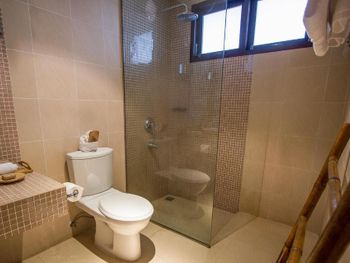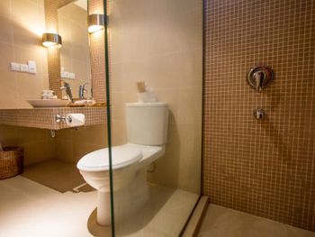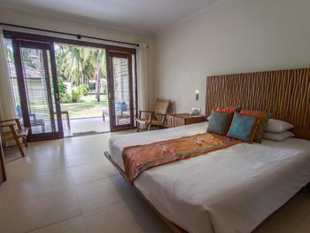 Elegantly decorated in beige with splashes of orange and brown fabrics, all well-appointed rooms feature wooden furnishings and air conditioning. Rooms are fitted with a wardrobe, seating area and personal safe. A cable flat-screen TV, mini-bar and an electric kettle are included. Certain rooms are fitted with a private balcony and/or feature views of the sea, pool or garden. Private bathroom comes with shower facility and a hairdryer. Extras include free toiletries, bathrobes and slippers.