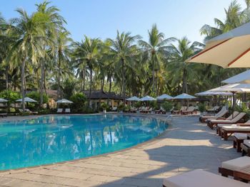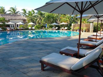 Отель на первой береговой линии, лежаков у моря и бассейна много, всегда есть свободные. Полотенца меняли каждый день, полотенца для пляжа приносили каждый день в номер, уборка каждый день. Территория отеля очень ухоженная, утопает в зелени. Рядом с отелем магазины, кафе, рестораны, лавки с фруктами, все намного дешевле чем в Нячанге, объедались морепродуктами. Единственное надо учесть, что на побережье Муйне всегда волны, к сожалению из-за этого пришлось уехать, недолго побыв в этом маленьком уютном городке.