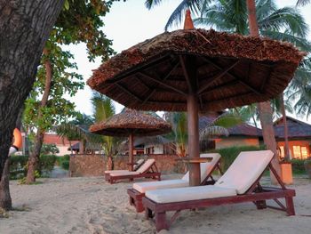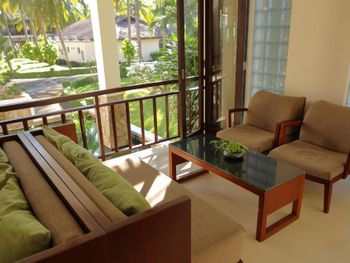 Отличный отель на берегу моря. Хороший песчаный пляж. Большая территория, утопающая в тени деревьев (пальм) и цветущих кустарников. По лужайкам скачут разнын птички, а по пальмам прыгают белки, ощущение, что ты находишься в тропическом лесу. Очень понравился домик и терраса, где можно было проводить время. В домике все есть для комфортного проживания. Завтраки вкусные, нам все понравилось, голодными не оставлись. Много фруктов и овощей, выпечка, йогурты, суп, яйца на выбор (готовят при вас), несколько горячий блюд - овощных или мясных. Кофе, молоко, чай, соки Кстати, очень понравился массаж, именно в отеле (это услуга платная) Пожалели, что сделали всего лишь один раз, перед отъездом
