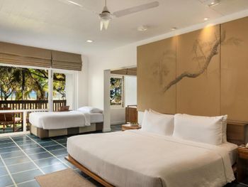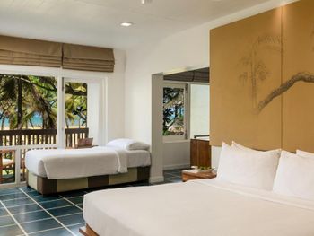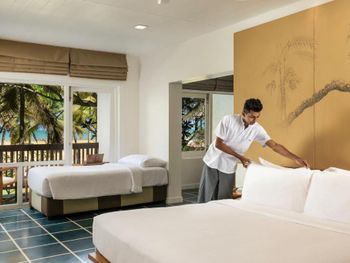 НО в отеле не сделаны либо устарели базовые вещи. И тут это вопрос к менеджменту этой сети, а не к коллективу на месте: - номера старые, требуют ремонта. Вся деревянная мебель в номере воняет и в ванной покрыта плесенью (что ожидаемо - дерево в ванной без обработки) - нет душевой лейки, только тропический душ. А ванна была в потеках и жёлтая. - огромное количество комаров. И хоть в розетке и стояло от отеля средство от комаров - это вообще не помогло. Вероятно потому что деревянные окна, двери имели щели и просто они толпой летели с улицы. А сеток над кроватями (что кстати популярно на острове) тут нет. Мы не спали всю ночь из за этого. У ребёнка укусы даже там где волосы на голове. - нет звуоизоляции. Мы слышали всю ночь разговор из соседнего номера и плачущего каждые 2 часа там младенца. Плюс старые просевшие входные двери в номер и вы слышите все разговоры персонала, грохот их тележек с утра и т.д. - отель пускает на территорию людей, которые ходят по пляжу и продают все подряд. За 40 минут ко мне подошло 5 разных продавцов и все они очень навязчивые. Тоесть отдыха у вас нет, у вас постоянно кто то над головой стоит и продаёт что то. - ооочень грязный пляж у океана. Да, он "общественный", но он перед отелем и гости отеля на него идут отдыхать. Там все - от окурков до обуви и бутылок из под алкоголя. Это так сложно раз в неделю пройти с пакетами это все собрать и выбросить? У вас 6!! человек полотенца выдаёт возле бассейна. Они за час могли бы все убрать один раз и не развивать помойку у вас на пороге. - дорогая еда "шведский стол". Мы живём на шри ланке, поаутешествовали по острову.