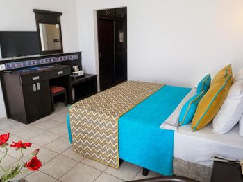 Хорошее рассположение отеля, номер с видом на море и басейн, красивый панорамный вид из ресторана на море и на крепость,Еда соответствует цена - качество,уборка номера каждый день.Программа по вечерам.