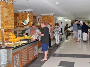 Неплохой отель, довольно чисто. С едой неплохо было, приноровились и уже на третий день понимали, что вкусное. Было много фруктов и овощей, пара видов мяса и рыба, тортики. Кофе растворимый не очень. До моря минут 7 с удовольствием гуляли.