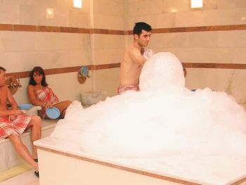 Вы можете позаниматься в фитнес-центре и отдохнуть в турецкой бане, сауне и массажном кабинете, также в вашем распоряжении водные горки, настольный теннис и бильярд. Предоставляются регулярные бесплатные услуги трансфера до центра города.