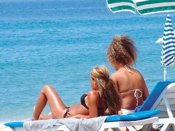 К сожалению дали номер с двумя кроватями, а не с одной большой. Я как-то упустила, что шезлонги и зонтики платно, так что мы загорали на песочке. Пляжное полотенце под залог в 5 евро. Вход в море с оголенными плитами, осторожно надо заходить.