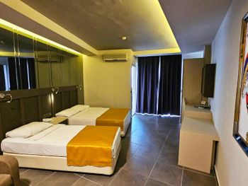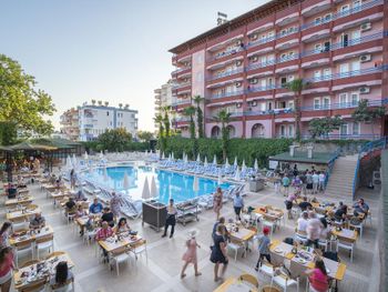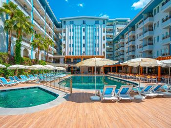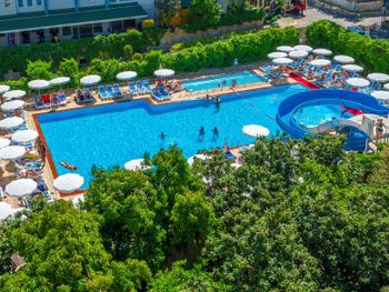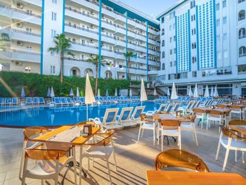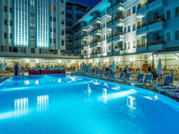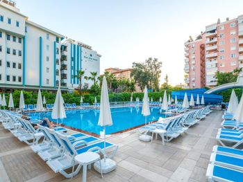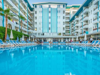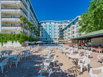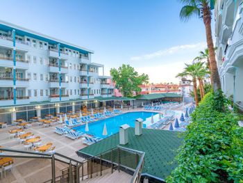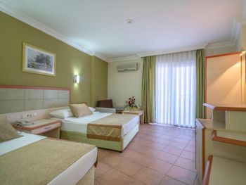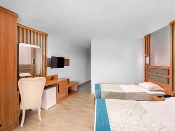 Это пакетный отель, куда привозят очень очень очень много туристов из категории «Тагил». Везде огромные очереди, чтоб попить, поесть, борьба за шезлонги, на пляже люди стоят в очереди по 50 минут чтоб набрать кучу алкоголя и бургеров. В ресторане очереди, мест не хватает, еда однообразная и не вкусная. Номер это вообще отдельная история, в примечаниях указывали одну двух спальную кровать, заселили в номер с двумя односпальными, на что ответили что все номера такие и нет проблем чтоб просто сдвинуть кровать! Спать было очень неудобно, ужасные матрасы! Но, самое ужастиков на наш взгляд это запах канализации и слышимость! Удалённость от моря! Прошу при выборе данного отеля обратить внимание на удалённость (да есть трансфер которым никто не пользуется, не удобное расписание) и что идти в отель в гору. Для нас была не проблем, но, для людей более пожилых может возникнуть затруднения! Слышимость такая, что все происходит в твоём номере. Очень плохая анимация, люди все ужасно пьют (ну ещё б, наливают постоянно, почему б не воспользоваться). Просили позднее выселение, готовы были заплатить, нам отказали. В общем повторюсь отель заточен под пакетное принятие людей. Рейтинг 2+ и никак не 4! В номере у нас никто не убрал, полотенце не меняли, воды нет. Тапочек соответсвенно тоже, хотя заявлено 4*. В общем не рекомендую. Если хотите спокойно отдохнуть, вкусно покушать, и получить эстетическое удовольствие, Вам не сюда!