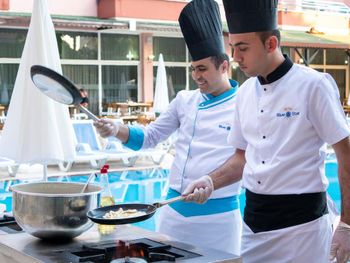 В ресторане отеля Blue Star, работающего в виде открытого «шведского стола», подают завтрак, обед, ужин и полуночный суп. В баре у бассейна можно заказать вкусные закуски и освежающие напитки.